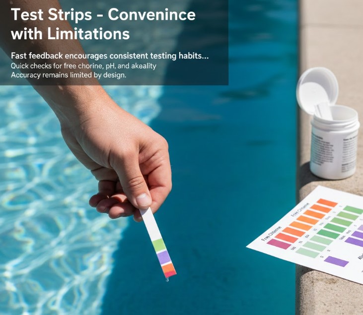 Daily spot checks, entry-level pool care, and casual maintenance schedules benefit most using strips as a monitoring tool rather than a diagnostic solution.