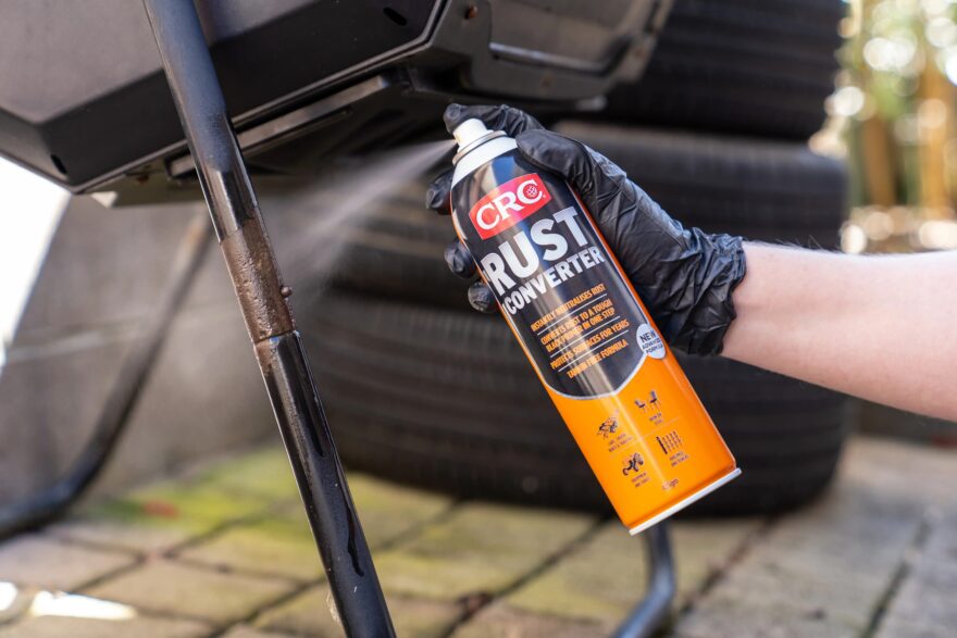 Only after brushing or grinding loose rust and applying a converter or primer can the protective layer go on.